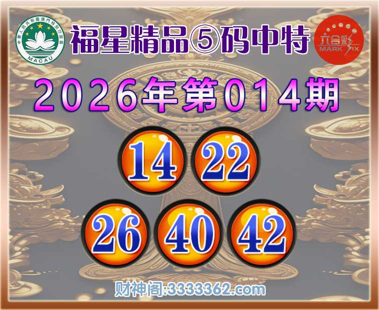 014期: 福星精品 🎀⑤码中特🎀【14.22.26.40.42】开:26