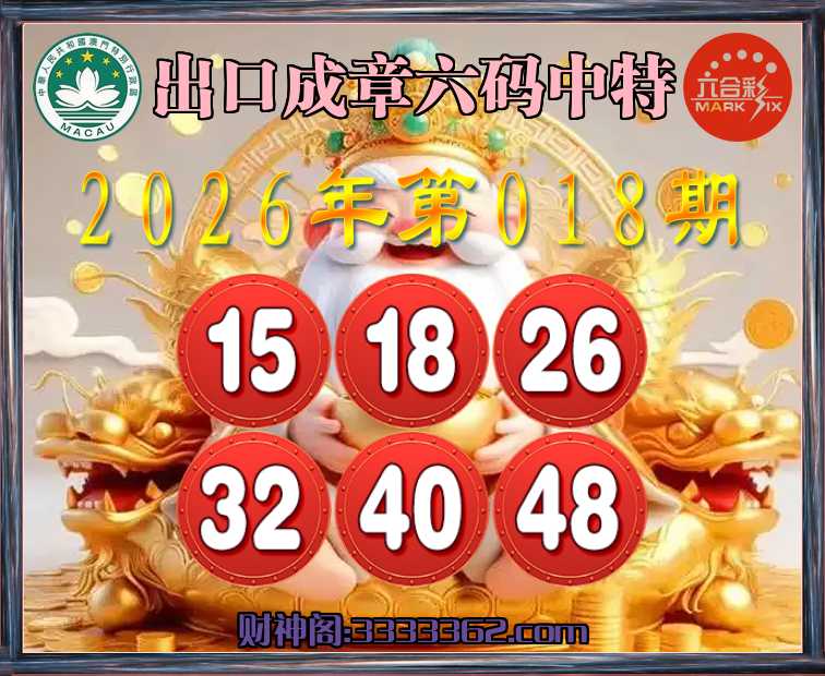 018期:【出口成章】 🎀六码中特🎀【15.18.26.32.40.48】开:00准