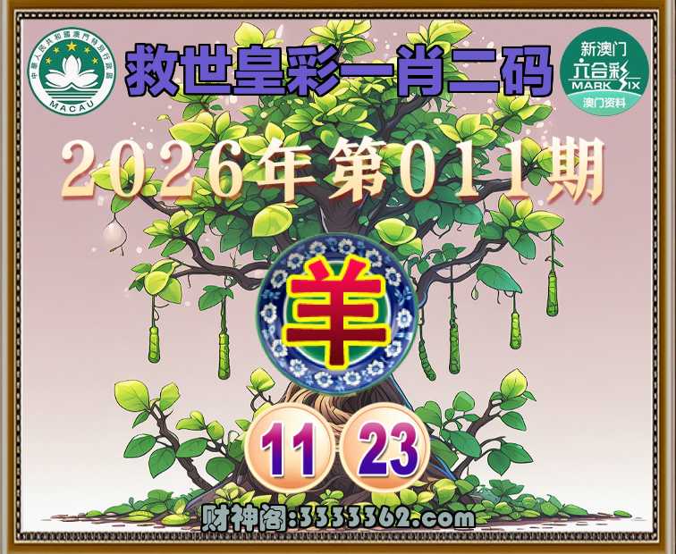 011期: 🌷『救世皇彩』 🌷一肖二码🌷【】【11.23】开:羊11