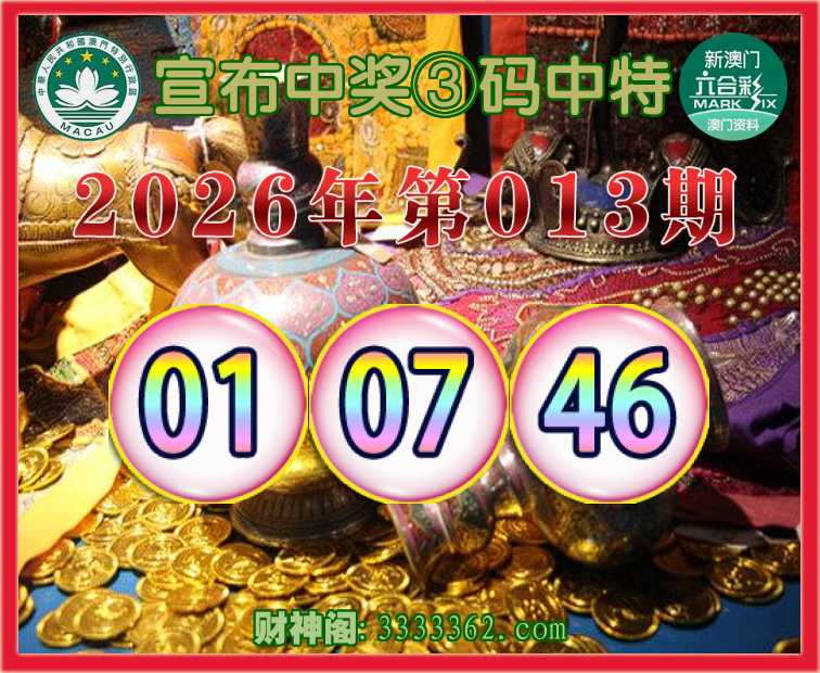 013期:【宣布中奖】 👉③码中特👉【01.07.46】开:01