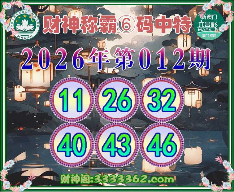 012期:【财神称霸】 🍁⑥码中特🍁【11.26.32.40.43.46】开:11