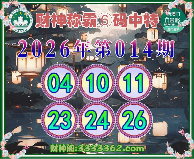 014期:【财神称霸】 🍁⑥码中特🍁【04.10.11.23.24.26】开:26