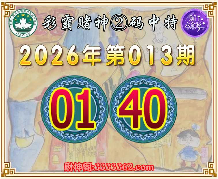 013期:『彩霸赌神』 🥫②码中特🥫【01.40】开:01