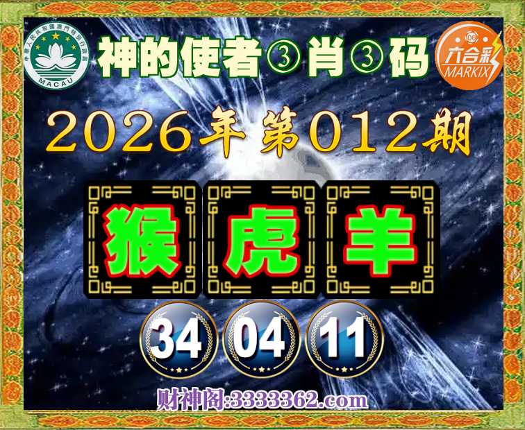 012期:《神的使者》 🏅③肖③码🏅【猴虎】【34.04.11】开:羊11
