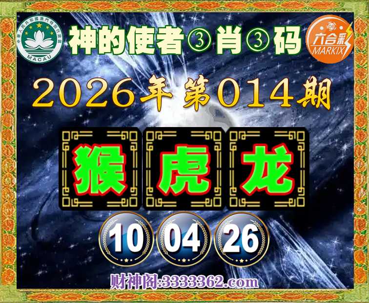 014期:《神的使者》 🏅③肖③码🏅【猴虎】【10.04.26】开:龙26