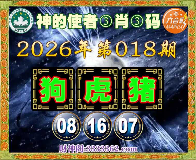 018期:《神的使者》 🏅③肖③码🏅【狗虎猪】【08.16.07】开:00准