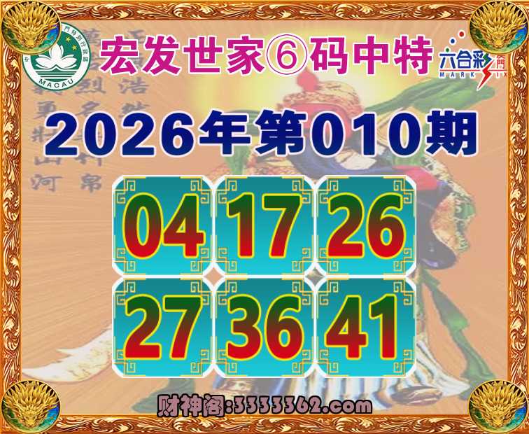 010期: 🍗『宏发世家』 🍗⑥码中特🍗【04.17.26.27.36.41】开:27