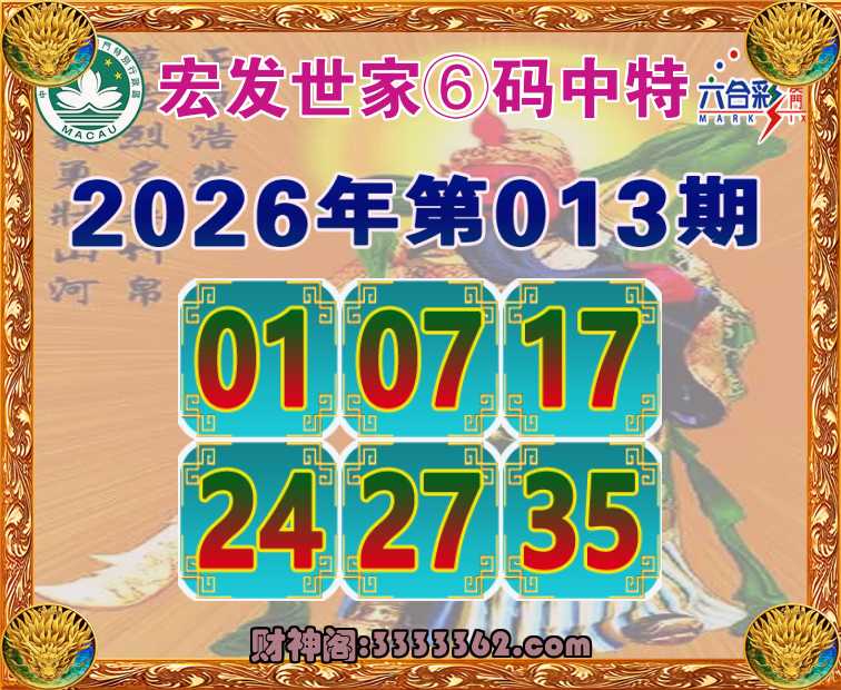 013期: 🍗『宏发世家』 🍗⑥码中特🍗【01.07.17.24.27.35】开:01