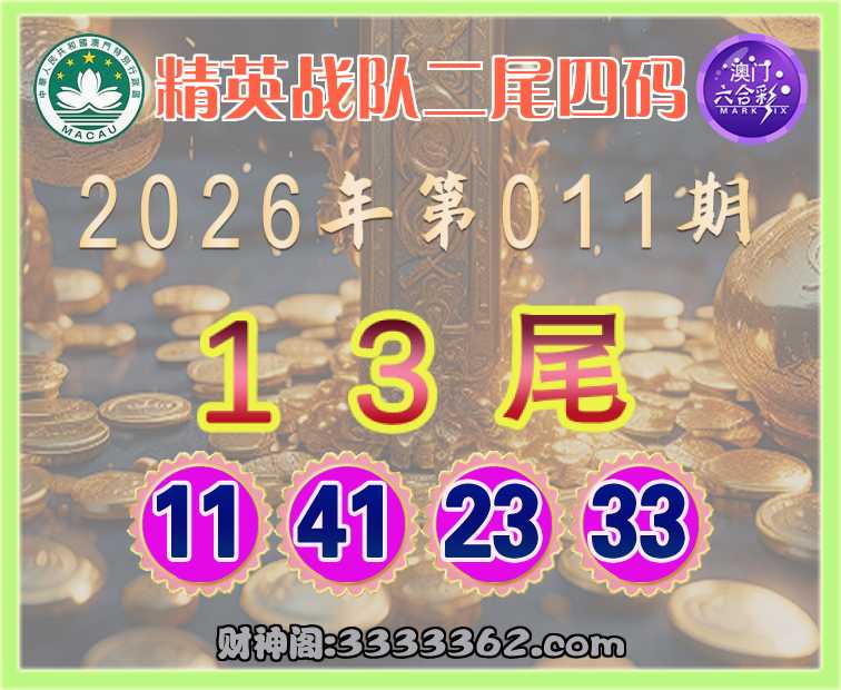 011期: 🚲『精英战队』 🚲二尾四码🚲【13尾主:11.41.23.33】开:11