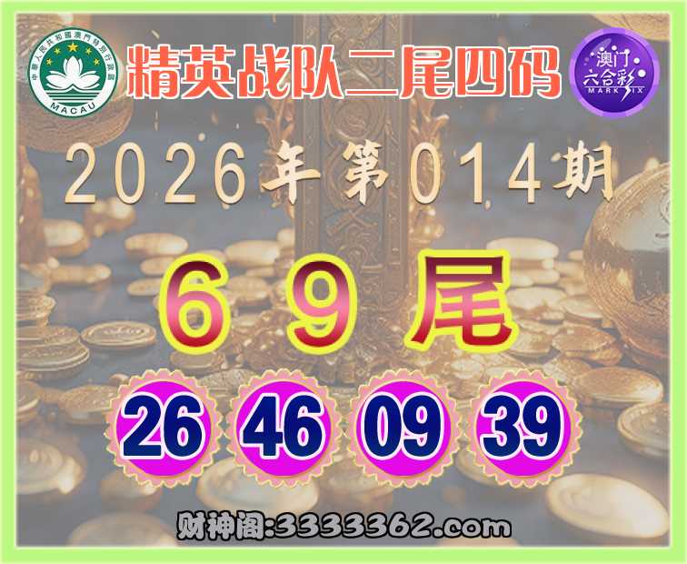 014期: 🚲『精英战队』 🚲二尾四码🚲【69尾主:26.46.09.39】开:26