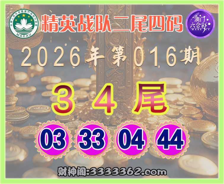 016期: 🚲『精英战队』 🚲二尾四码🚲【34尾主:03.33.04.44】开:00准
