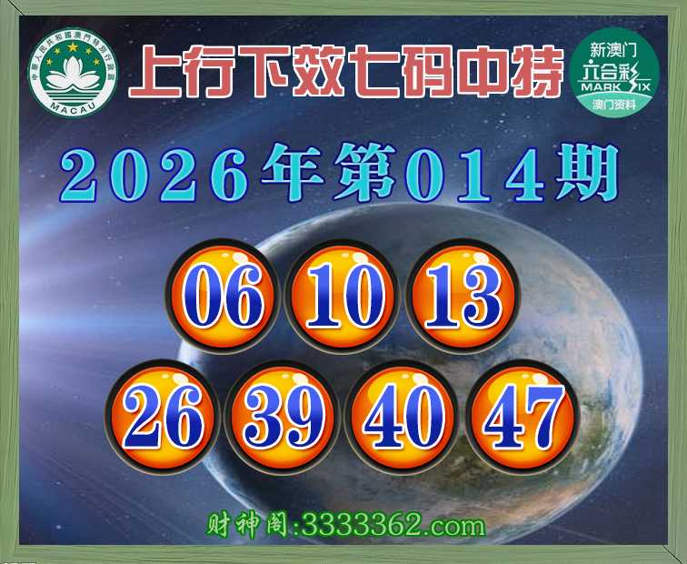 014期:〖上行下效〗七码中特⚽【06.10.13.26.39.40.47】开:26