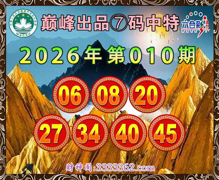 010期:〖巅峰出品〗⑦码中特⚽【06.08.20.27.34.40.45】开:27
