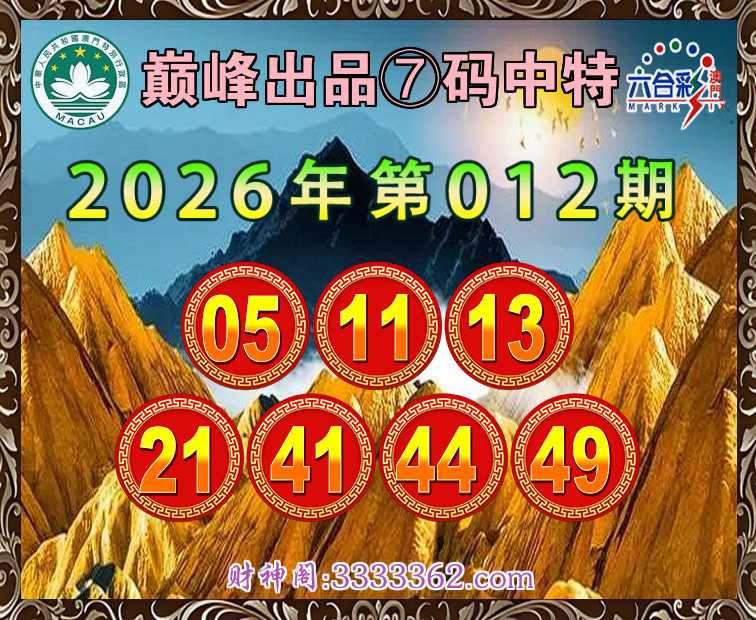 012期:〖巅峰出品〗⑦码中特⚽【05.11.13.21.41.44.49】开:11