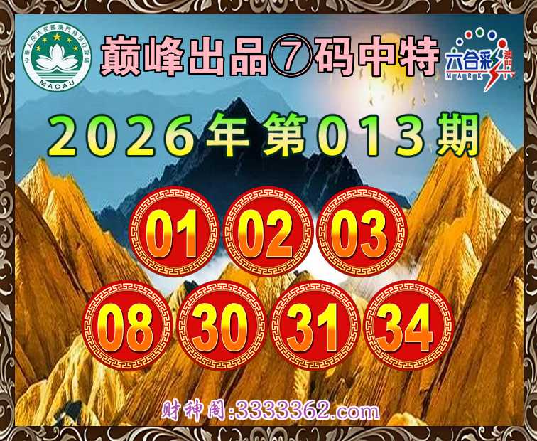 013期:〖巅峰出品〗⑦码中特⚽【01.02.03.08.30.31.34】开:01