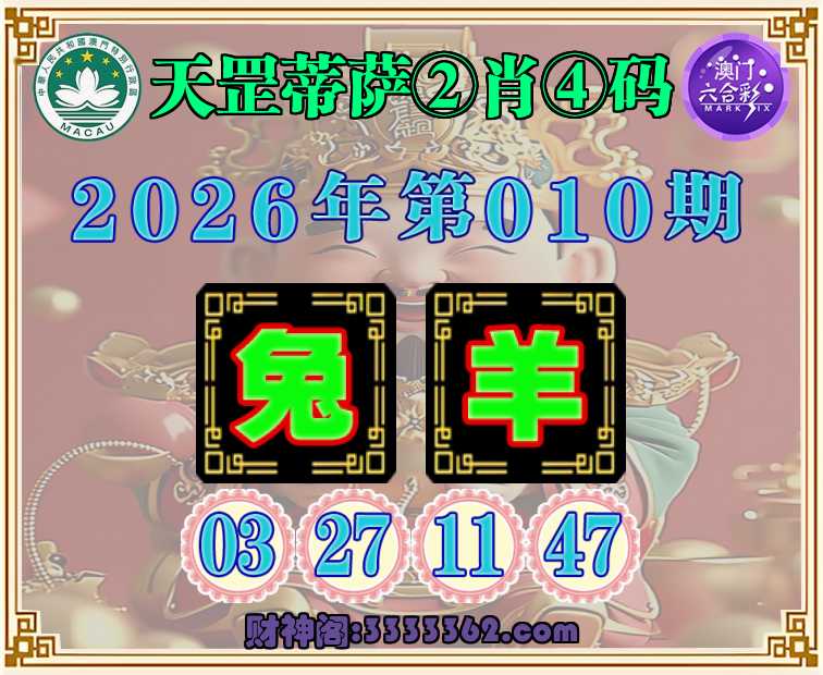 010期:《天罡蒂萨》 🥖②肖④码🥖【羊】【03.27.11.47】开:兔27