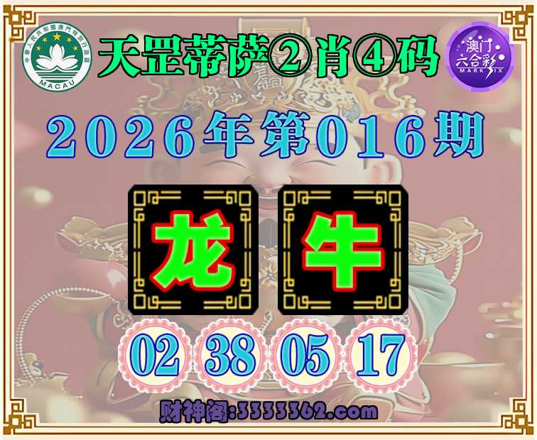 016期:《天罡蒂萨》 🥖②肖④码🥖【龙牛】【02.38.05.17】开:00准