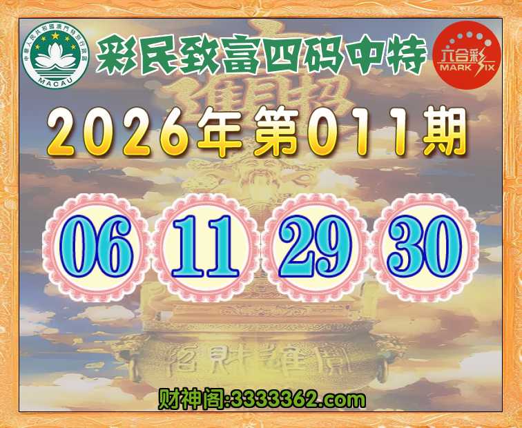 011期:【彩民致富】 🀄四码中特🀄【06.11.29.30】开:11