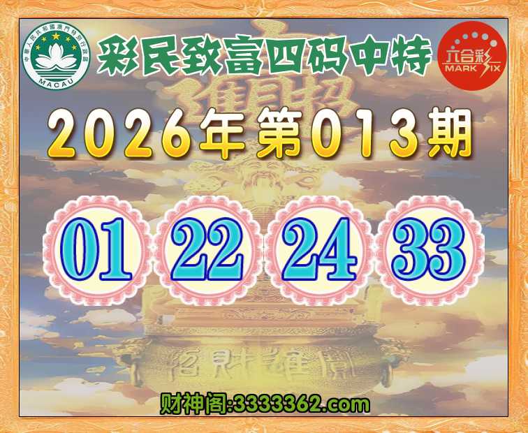 013期:【彩民致富】 🀄四码中特🀄【01.22.24.33】开:01