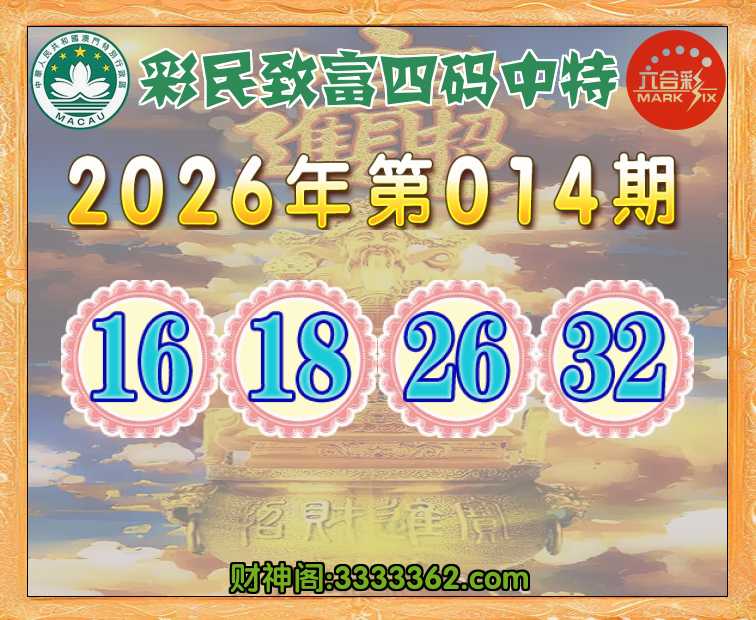 014期:【彩民致富】 🀄四码中特🀄【16.18.26.32】开:26