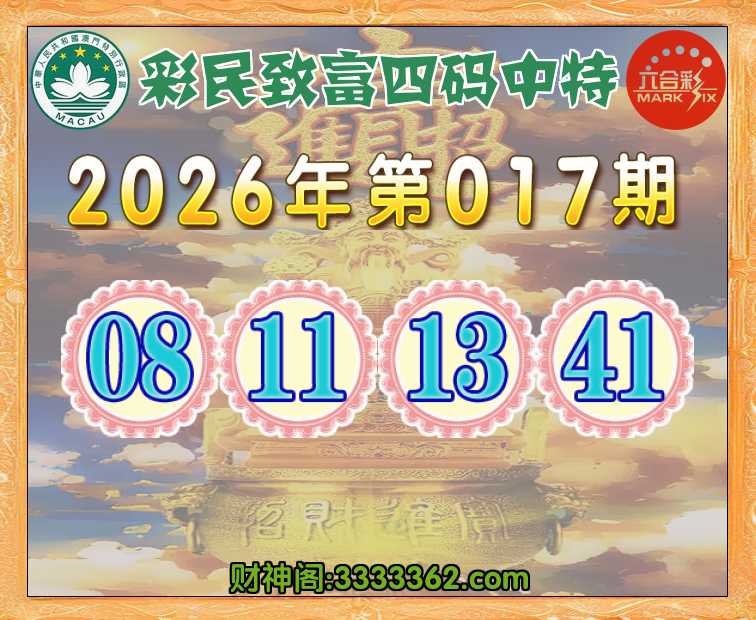 017期:【彩民致富】 🀄四码中特🀄【08.11.13.41】开:00准
