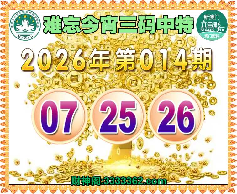 014期:《难忘今宵》 ♥️三码中特♥️【07.25.26】开:26