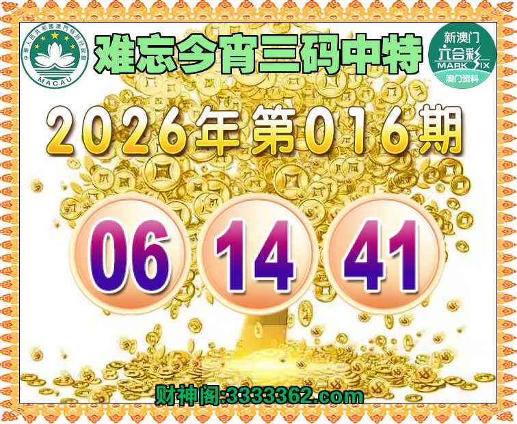 016期:《难忘今宵》 ♥️三码中特♥️【06.14.41】开:06