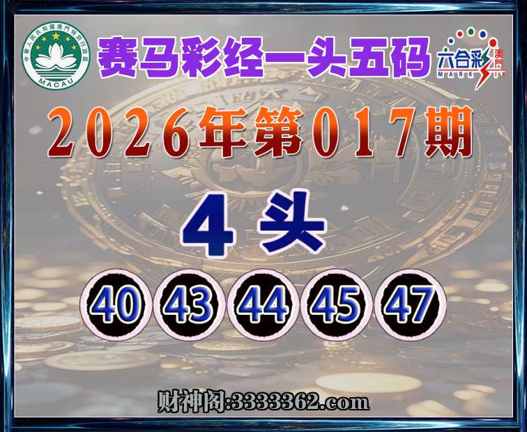 017期:〖赛马彩经〗 🌷一头五码🌷【4头主:40.43.44.45.47】开:00准