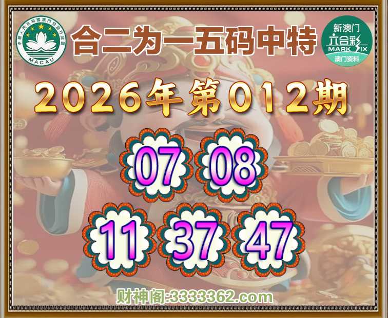 012期:【合二为一】 🚵‍♀️五码中特🚵‍♀️【07.08.11.37.47】开:11