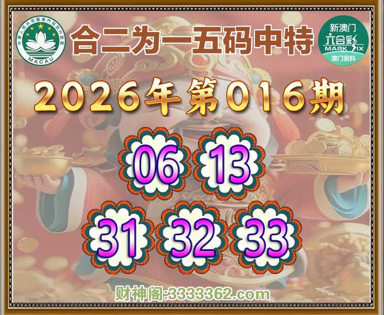 016期:【合二为一】 🚵‍♀️五码中特🚵‍♀️【06.13.31.32.33】开:06
