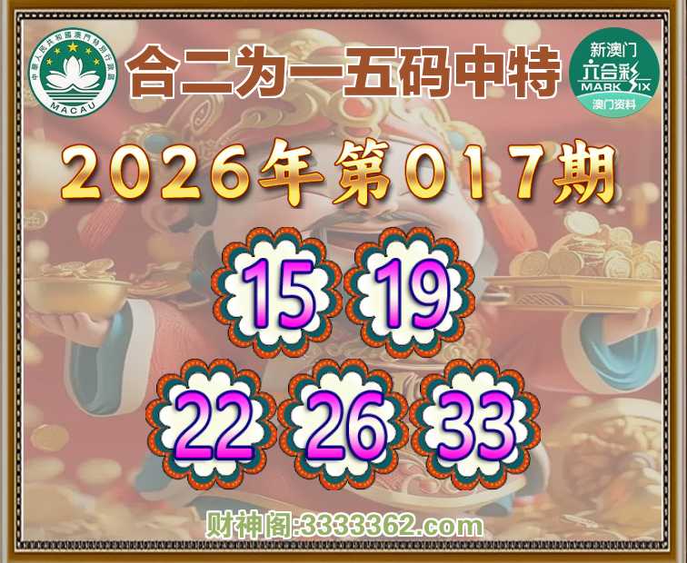 017期:【合二为一】 🚵‍♀️五码中特🚵‍♀️【15.19.22.26.33】开:00准