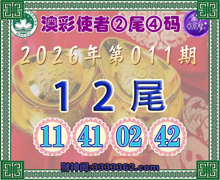 011期:【澳彩使者】 ☺️②尾④码☺️【12尾主:11.41.02.42】开:11