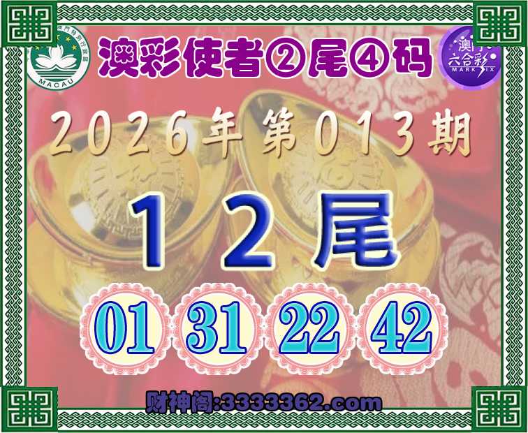 013期:【澳彩使者】 ☺️②尾④码☺️【12尾主:01.31.22.42】开:01