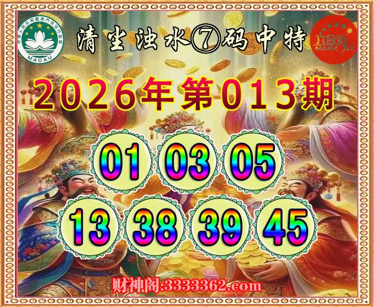 013期:『清尘浊水』 🚣⑦码中特🚣【01.03.05.13.38.39.45】开:01
