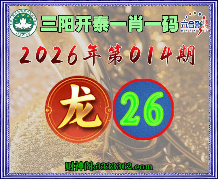 014期:《三阳开泰》 💄一肖一码💄【】【26】开:龙26