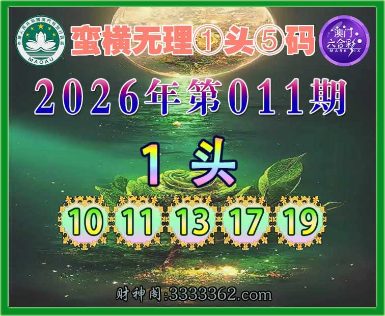 011期: 蛮横无理 🍏①头⑤码🍏【1头主:10.11.13.17.19】开:11