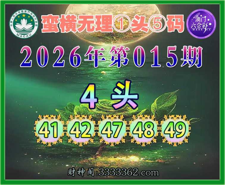 015期: 蛮横无理 🍏①头⑤码🍏【4头主:41.42.47.48.49】开:00准