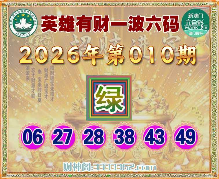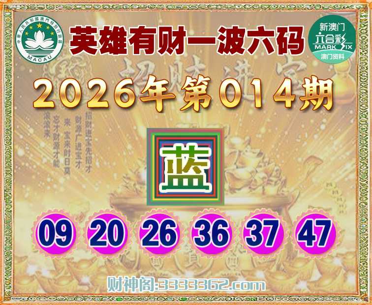 014期:【英雄有财】 ☺️一波六码☺️【波】开:龙26