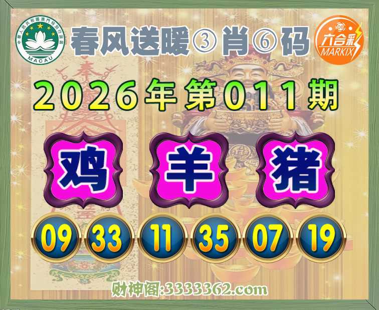 011期: ♥️『春风送暖』 ♥️③肖⑥码♥️【鸡猪】开:羊11