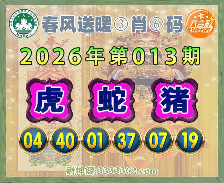 013期: ♥️『春风送暖』 ♥️③肖⑥码♥️【虎猪】开:蛇01