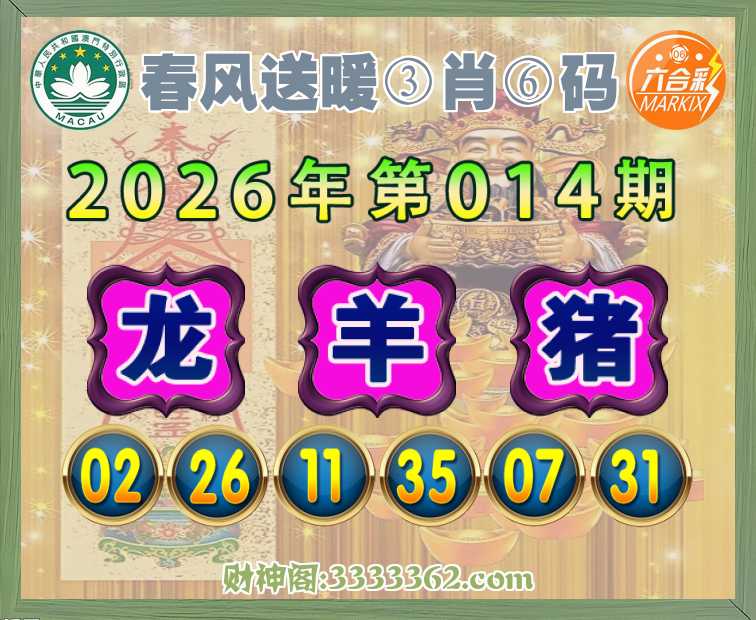 014期: ♥️『春风送暖』 ♥️③肖⑥码♥️【羊猪】开:龙26